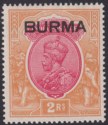 King George V watermark upright Burma overprint on India 2r carmine and orange mint. Lightly mounted mint.