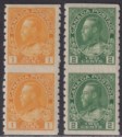 King George V 1c chrome-yellow and 2c deep green imperf x perf 8 coil pairs mint. The 1c are die II. Unmounted mint.