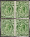 Falkland Islands 1914 KGV ½d Deep Yellow-Green Line Perf Block of 4 Mint SG60b