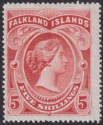Falkland Islands 1898 QV 5sh Red Mint SG42 cat £250