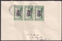 King George V Centenary of British Administration ½d strip of 3 used on cover. With 7th December 1936 Fox Bay postmarks.