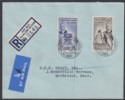 Falkland Islands 1952 KGVI 1sh, 3d Used on Registered Airmail Cover FOX BAY Pmks
