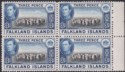 Falkland Islands 1944 KGVI 3d Black + Deep Blue Marginal Block of 4 Mint SG153a