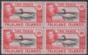 Falkland Islands 1941 KGVI 2d Black and Carmine-Red Block of 4 Mint SG150