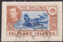 Falkland Islands 1938 KGVI 5sh Blue and Chestnut Used on Piece SG161 cat £95