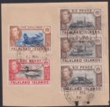 Falkland Islands 1938 KGVI 5sh, 6d x3 + 1d Used on Piece SG161