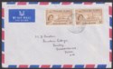 Falkland Islands 1957 QEII 6d x2 Used on Cover to UK with FOX BAY Postmark