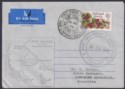 Queen Elizabeth II Flowers 1p used on airmail cover sent to Argentina. With 15th November 1972 'First O'seas Airmail from Temporary Aerodrome / Port Stanley postmark and Joint Declaration of Buenos Aires cachet on front and 21st November 1972 Comodoro Rivadavia arrival mark on reverse.