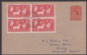 Queen Elizabeth II ½d perf 15 block of four uprating 1d postal stationery postcard sent to Port Stanley. With 14th December 1970 South Georgia postmark. Fine used.