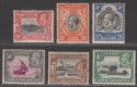 King George V part set to 1sh mint. With hinge creasing on 20c and on 30c, one missing side perf on 1sh and lightly toned gum on all values. Mounted mint.